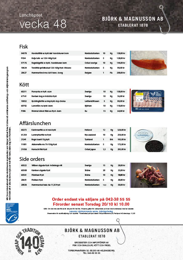Tänk på att order måste vara oss tillhanda senast 14,00 för lev på morgonen dagen efter.