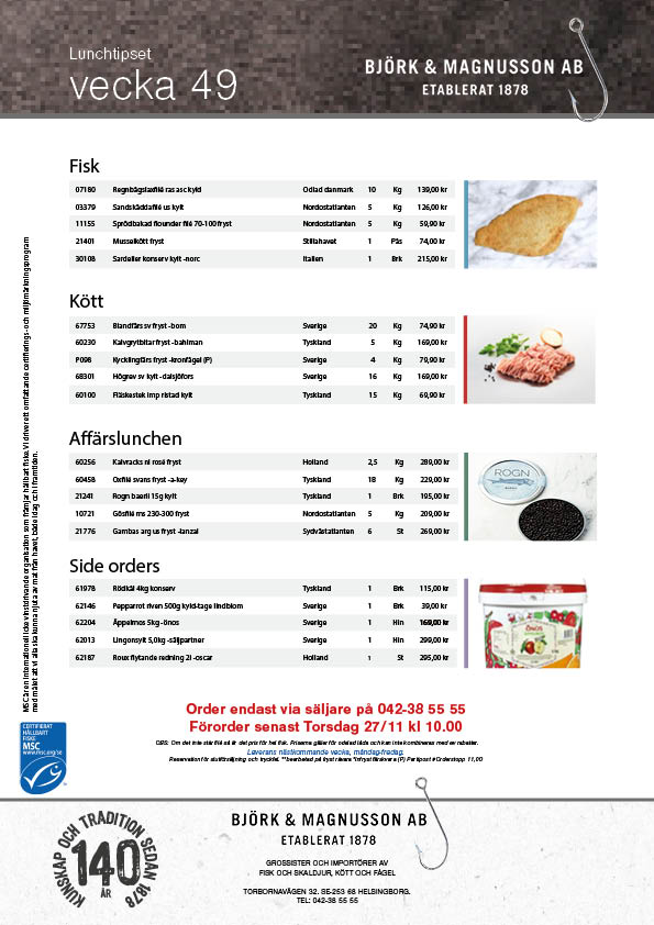 Tänk på att order måste vara oss tillhanda senast 14,00 för lev på morgonen dagen efter.