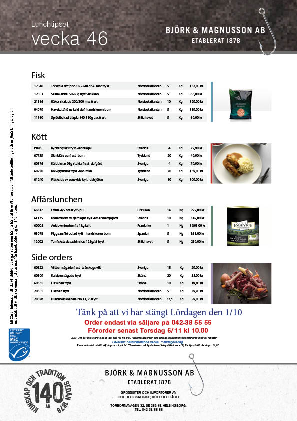 Telesvar: 16,00-07,00 order som lämnas efter 14,00 levereras på em