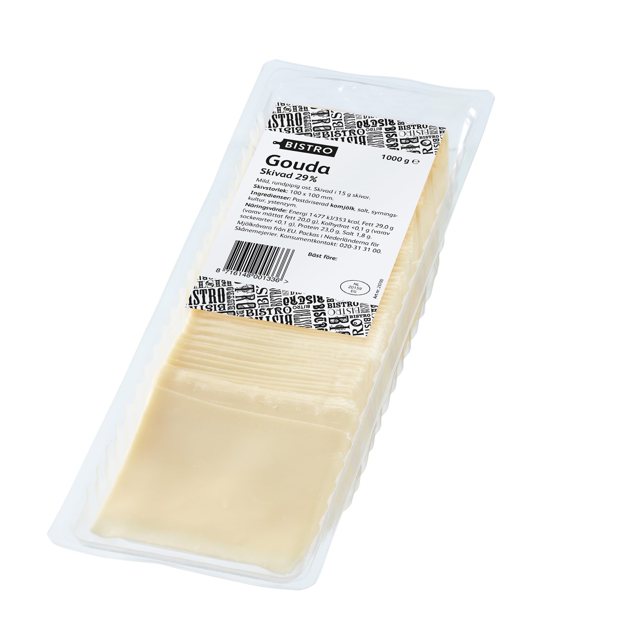 Gouda är len i konsistensen och har god sälta och lite syrlighet. Våra smidiga skivor passar perfekt på smörgåsen eller buffén.