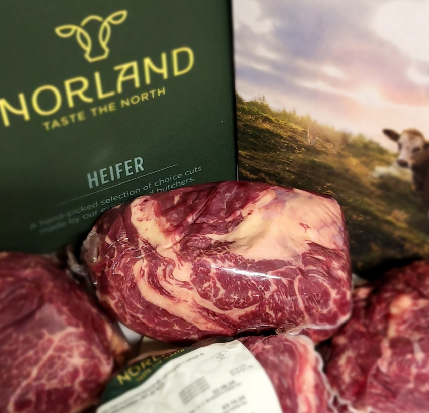 Kvigorna som väljs ut för NORLAND kommer från flera olika raser som passar för uppfödning av nötkött. Genom korsningsavel skapar vi kött som har en stor variation när det gäller fett och form. Detta ger våra experter en bred palett från vilken de kan välja exakt rätt kvalitet som följer de mycket specifika kriterier som vi har definierat för sortimentet NORLAND