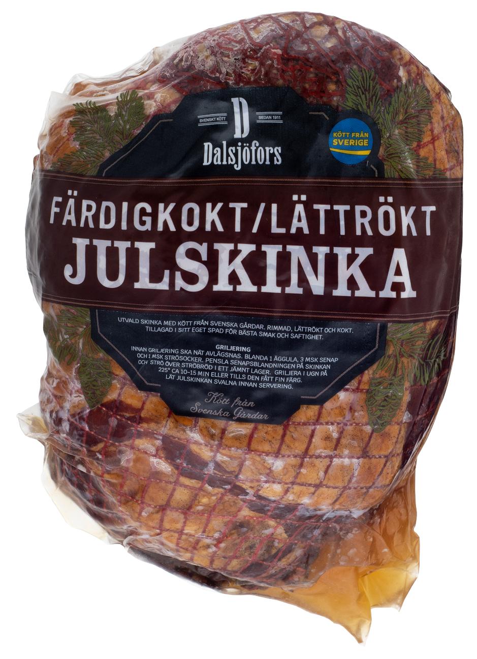 Dalsjöfors erbjuder dig en julskinka med kött från utvalda svenska gårdar. Vår julskinka är en god, saftig och smakrik skinka du kan njuta av. Kom i julstämning med vår rimmade, rökta och färdigkokta julskinka utan svål! Varsamt kokt under längre tid för att bli extra saftig. Avlägsna nätet, pensla skinkan med uppvispad äggula och senap, täck med ströbröd och griljera sedan i ugnen på 225°C tills den fått fin färg.