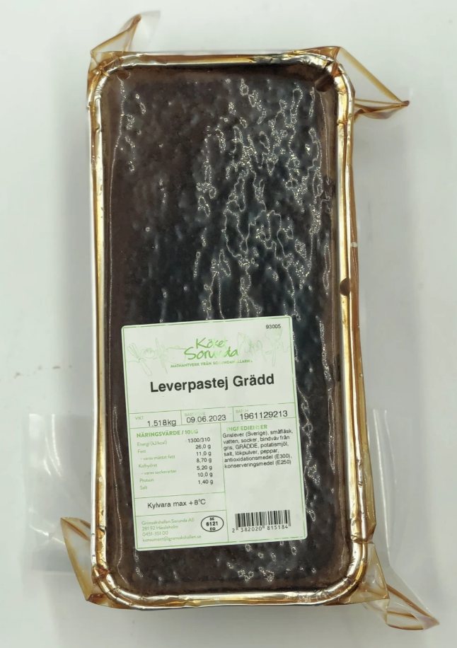 Bakad leverpastej som är mild i smaken och bredbar till pålägg. Glutenfri. produceras på Snapphanechark utanför Hässleholm detta är en del av vårt sortiment från Sorundaköket